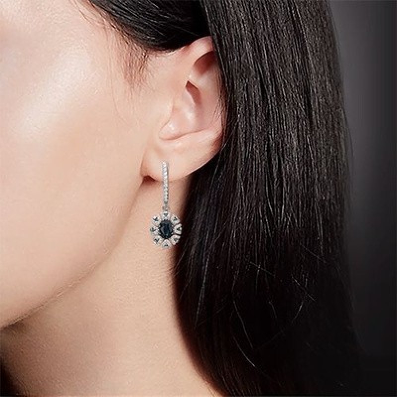 PLATINA Серьги с английским замком из белого золота 585 пробы c сапфиром и бриллиантами